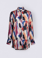 Apportez une touche d’audace à votre tenue avec cette chemise oversize aux motifs artistiques et colorés. Son imprimé abstrait mêle des nuances vibrantes de rouge, bleu, rose et orangé pour un rendu moderne et expressif. Confectionnée en 100 % polyester, elle offre une texture fluide et légèrement satinée qui assure confort et élégance au quotidien.