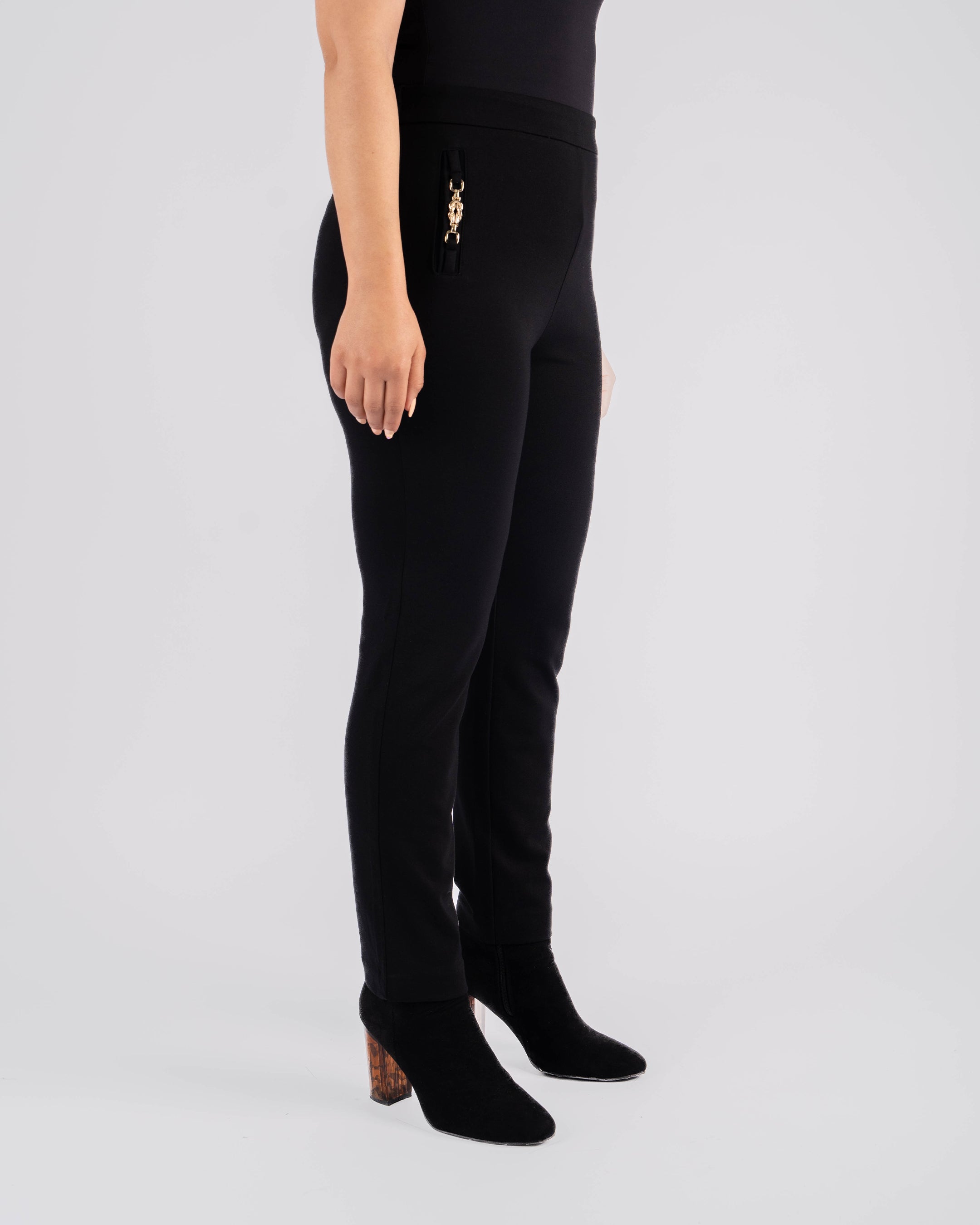 PANTALON EN MAILLE AVEC DÉTAIL DÉCORATIF DORÉ