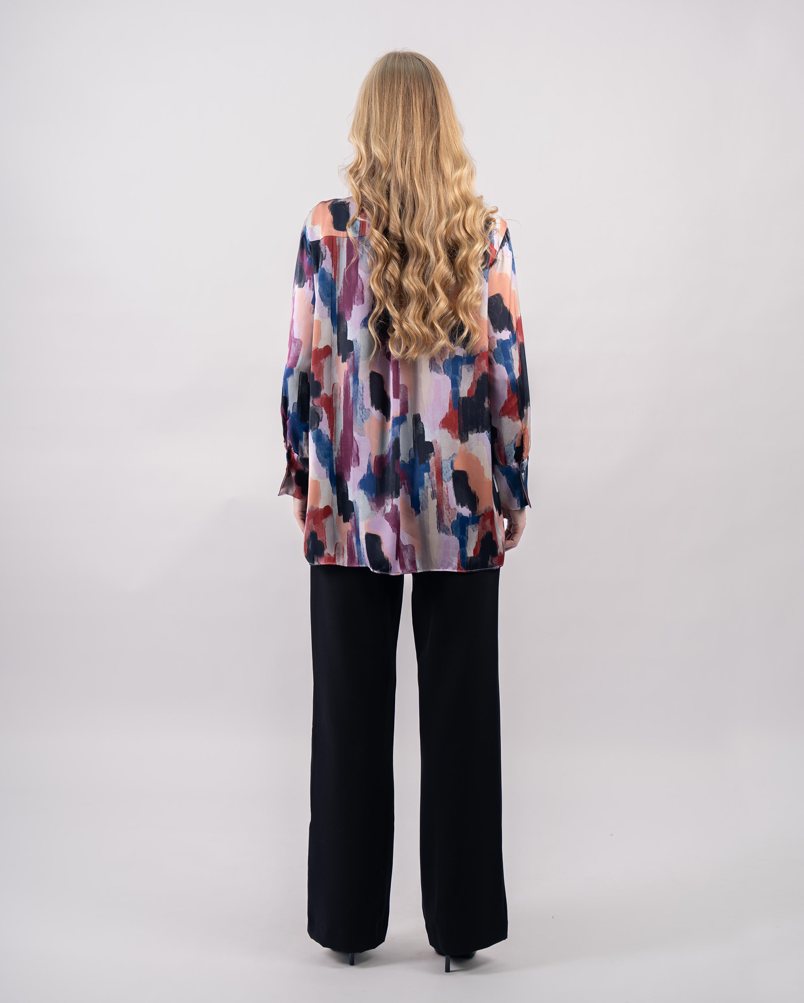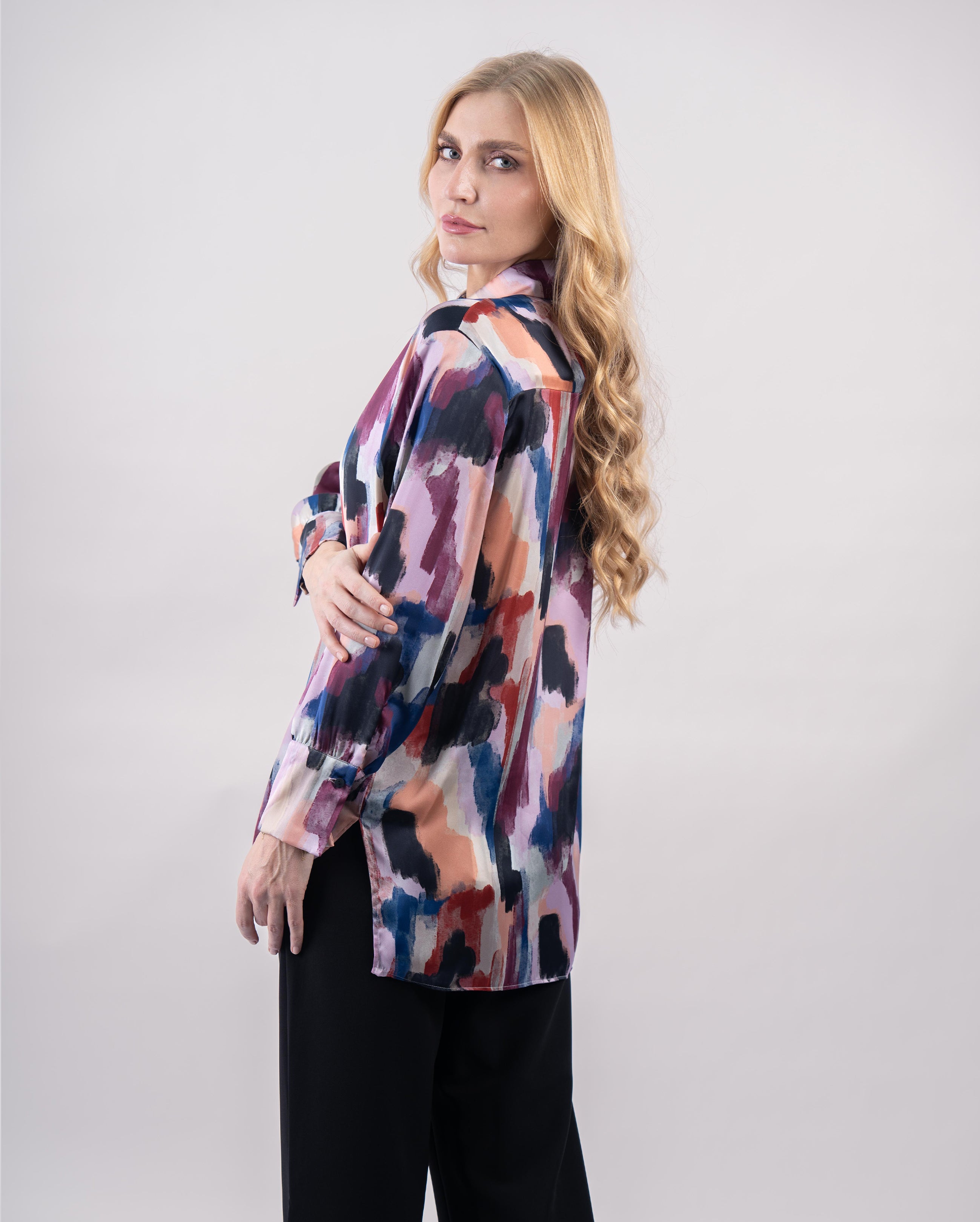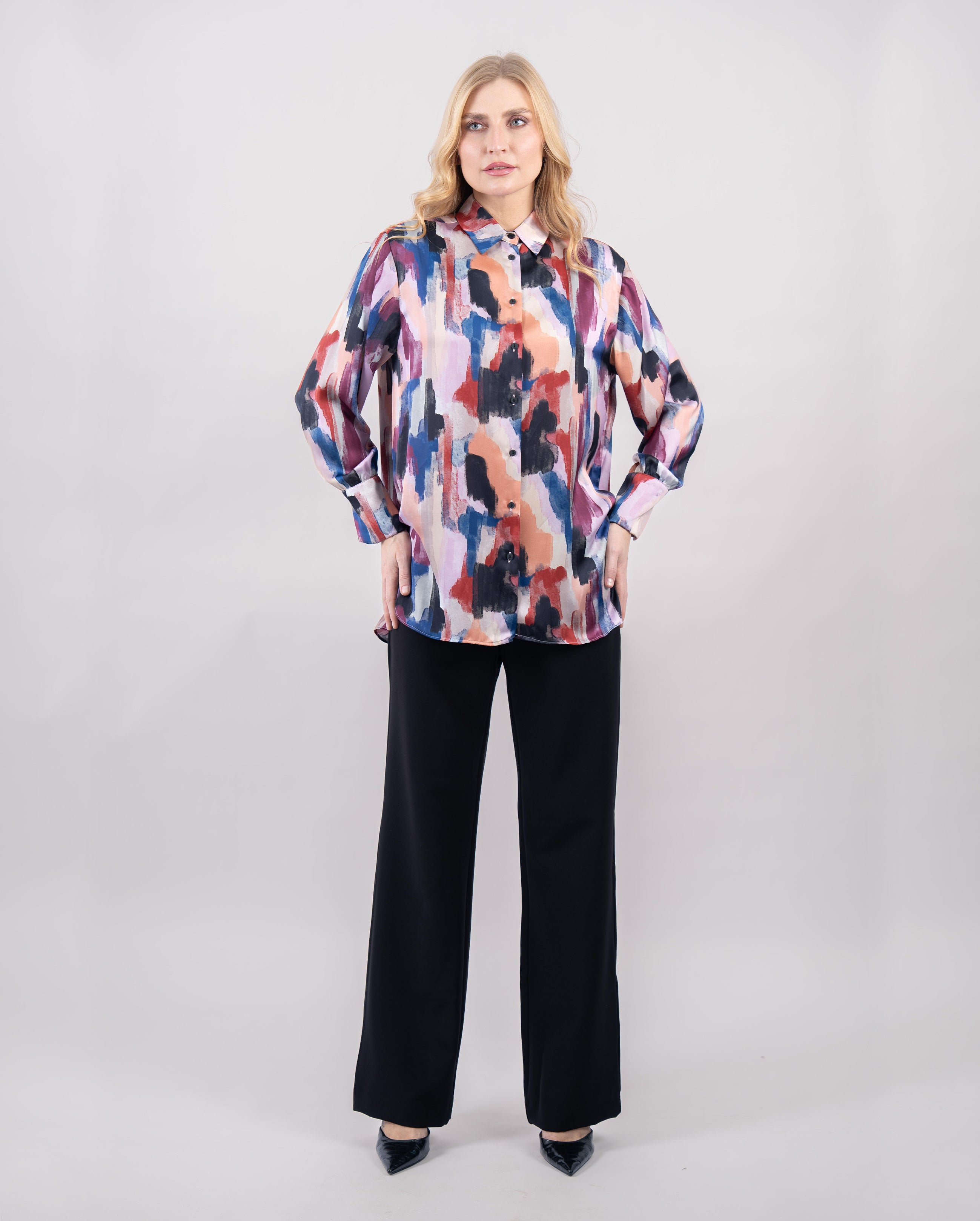 Apportez une touche d’audace à votre tenue avec cette chemise oversize aux motifs artistiques et colorés. Son imprimé abstrait mêle des nuances vibrantes de rouge, bleu, rose et orangé pour un rendu moderne et expressif. Confectionnée en 100 % polyester, elle offre une texture fluide et légèrement satinée qui assure confort et élégance au quotidien.