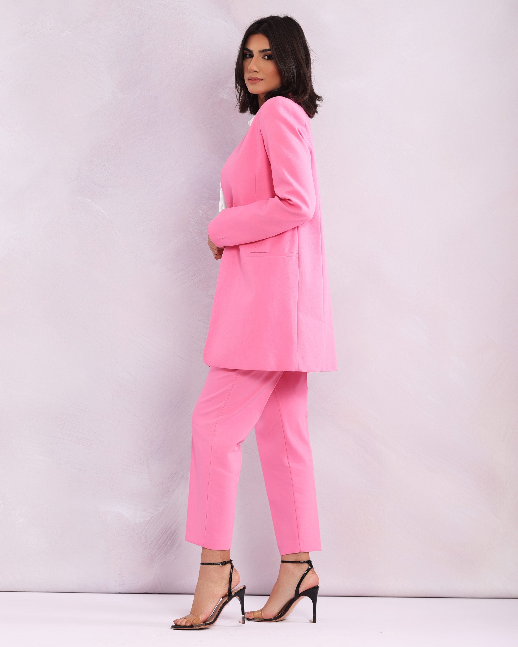Chaqueta rosa sin cuello